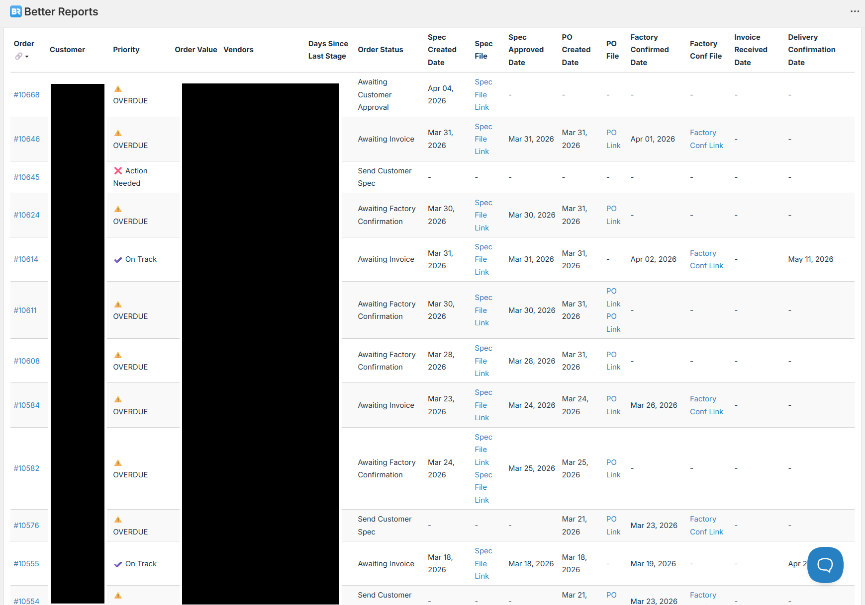 Pod Furniture is a furniture retailer based in Cork, Ireland, managing both custom-made orders across 15+ vendors and factories, as well as non-custom orders. Their team was relying on a manual Excel spreadsheet to track order progress through multiple stages — from spec creation and customer approval, through purchase orders and factory confirmations, to delivery. Orders were falling through the cracks, follow-ups were being forgotten, and the team had no real-time visibility into which orders needed attention on any given day.